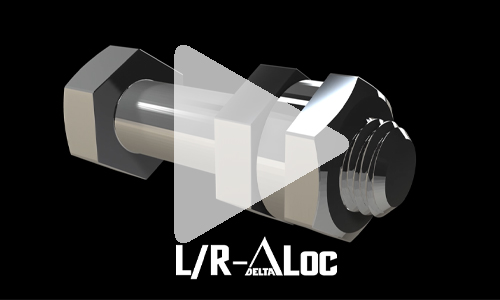 L/R-ΔLocは、右ねじのナット(Rナット)と左ねじのナット(Lナット)の双方を螺合可能なL/Rボルトに、先に螺合されるRナットに設けられた三角凸状を成すΔ(デルタ)部の3つの頂部が、後から螺合されるLナットに設けられた円筒部を弾塑性変形させながら弾力的に一体化させることで強靭なロッキングを実現します。